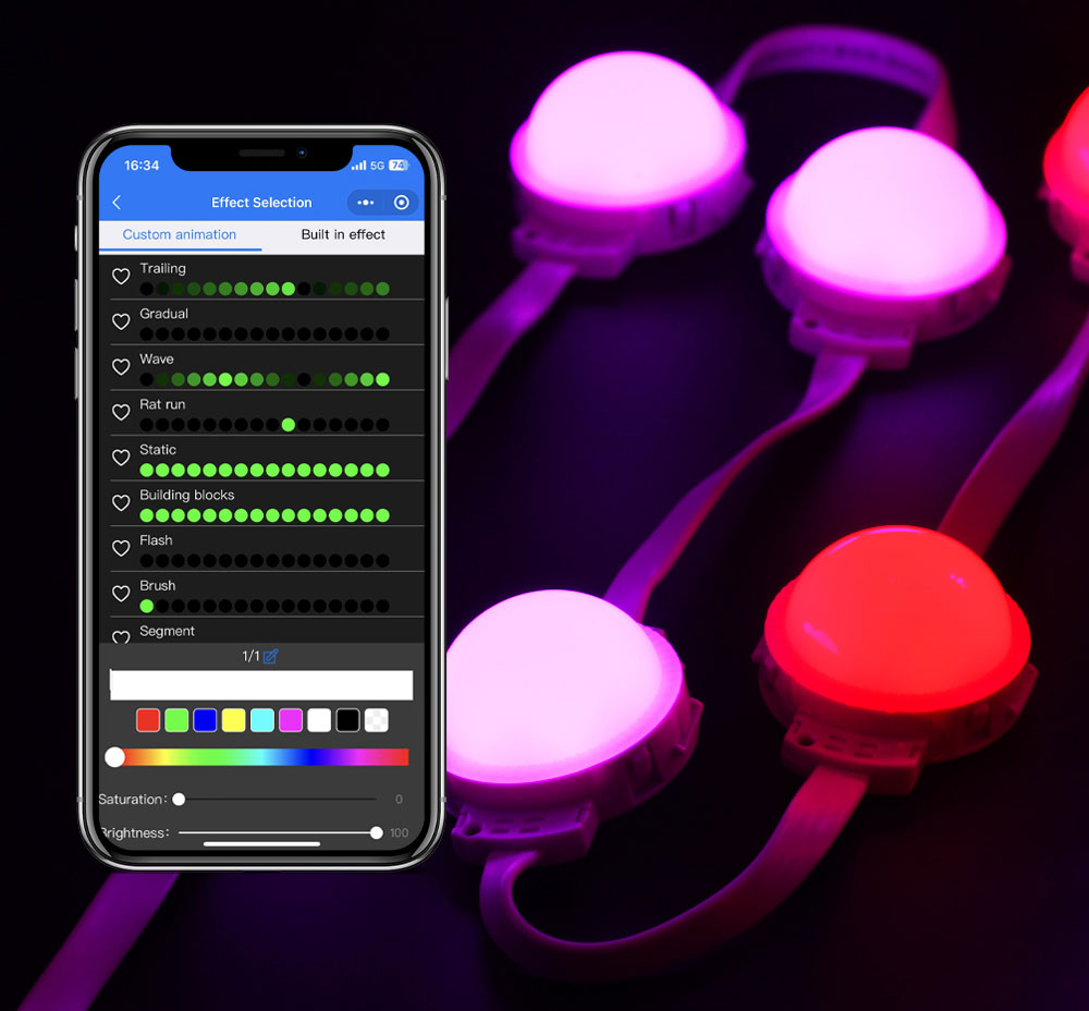 This led pixel light use the brand new high temperature resistant materials,which can withstand - -40 ℃~105 ℃ extreme temperature.The waterproofferrule and rust proof stainless steel are used at the interface,and the waterproof