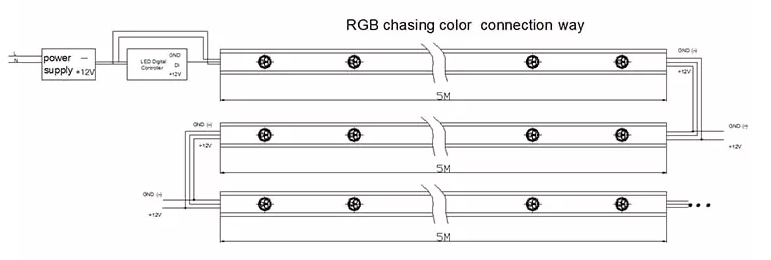 According to different models of the LED Point light source, select the right connection way forinstallation. In each connection diagram, the choice of power supply is calculated according to therequired number of LED Point light source.The total power of the power supply = the power of asingle Point light source * the number of Point light source N* 1.3, generally 30% of the totalamount of power, if the total power of the LED Point light source is much larger than one powersupply ,then use two or more power supplies for them.