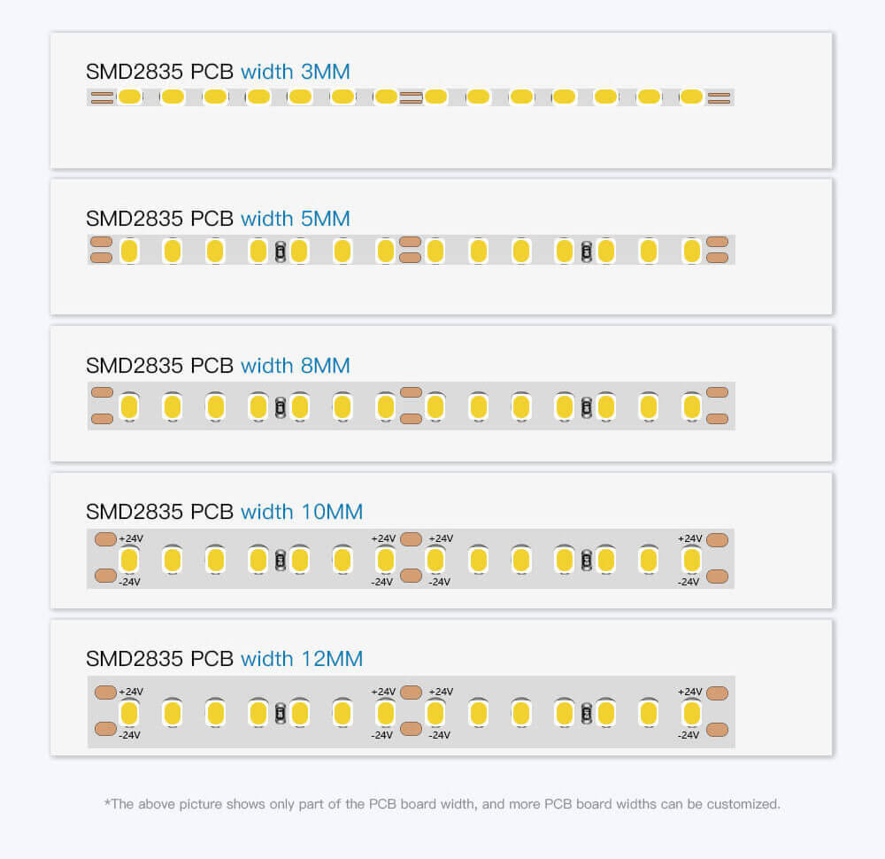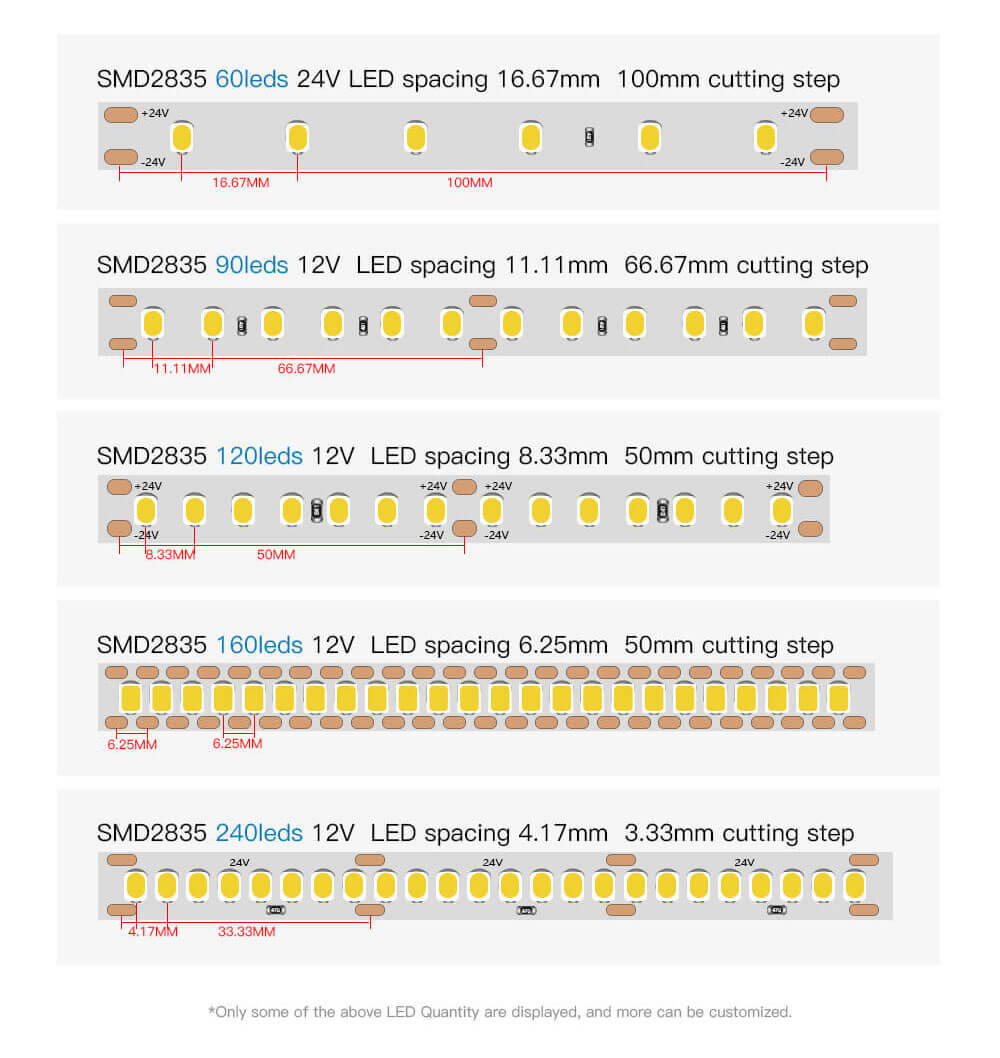 Lower energy consumption: 2835 LED strips consume less energy compared to other LED strips, making them a more energy-efficient lighting option. Higher color rendering index (CRI): The 2835 LED strip has a higher CRI compared to other LED strips, which means it can display colors more accurately and vividly.